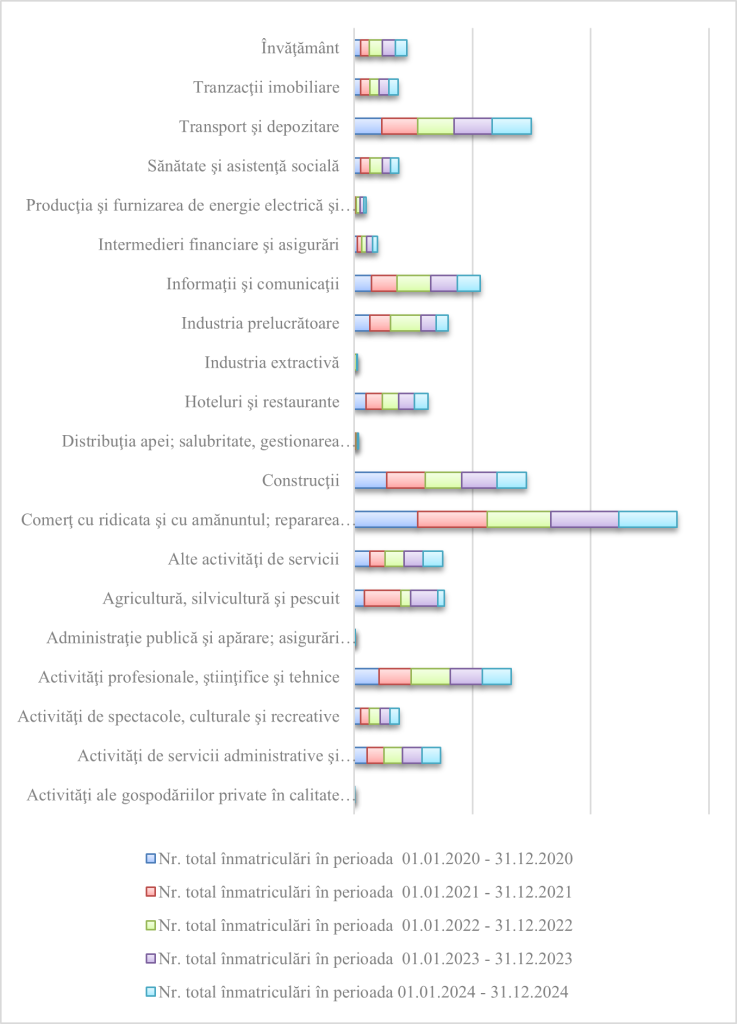 La nivel autohton, înmatricularea companiilor în intervalul de referință 2020-2024 înregistrează următorul trend reflectat prin intermediul graficului de mai jos: