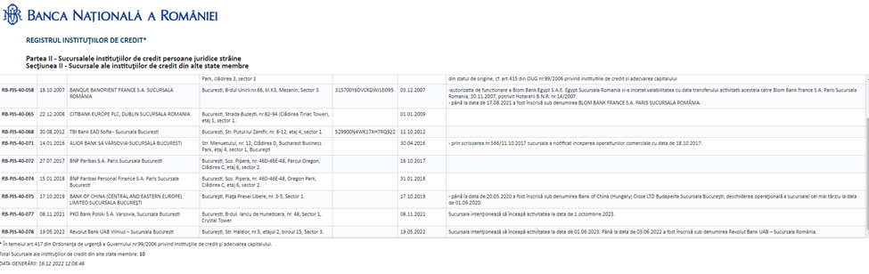 – Există reglementări sau cerințe specifice care impun ca extrasele de cont să fie emise doar de către bănci înregistrate în România?